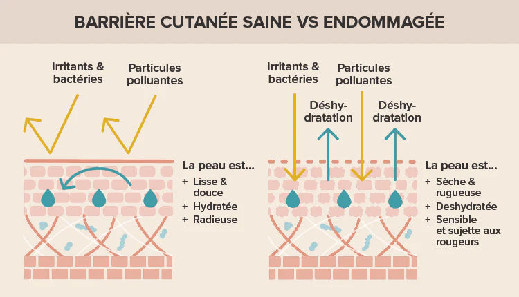 La barrière cutanée, c’est la couche protectrice qui garde la peau forte et équilibrée.