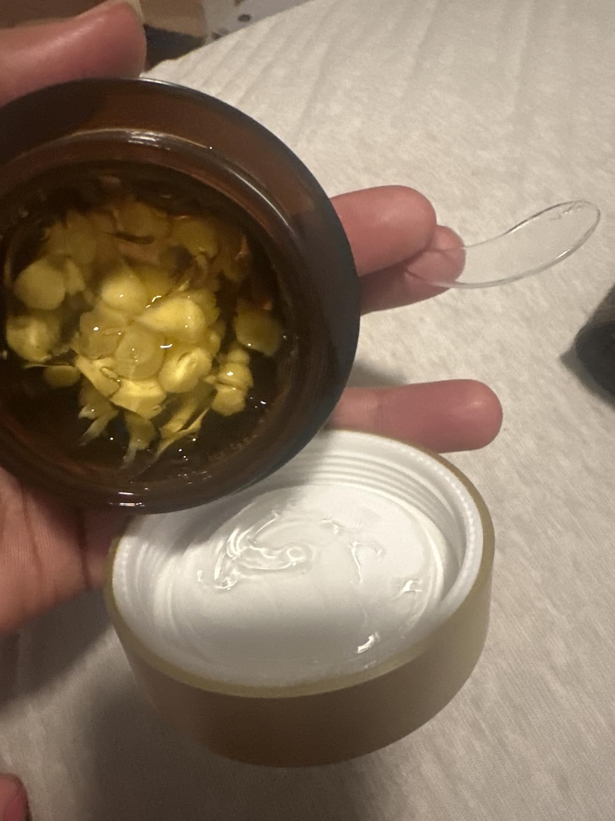 Mélangez la capsule de vitamine et le gel transparent dans un ratio adapté à votre type de peau.