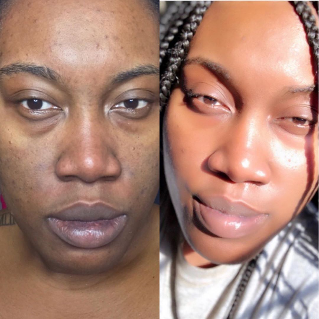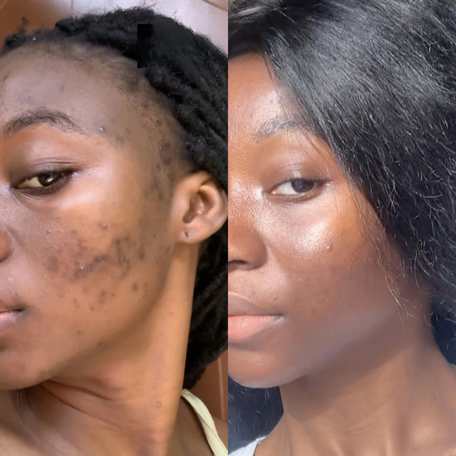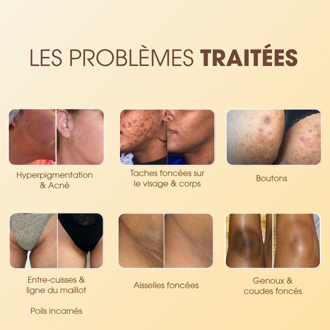 👉 La plupart de nos clientes remarquent un teint plus uniforme dès 7 jours. Pour des résultats complets (zones sombres, cicatrices, hyperpigmentation), une utilisation régulière de 4 à 6 semaines est idéale.