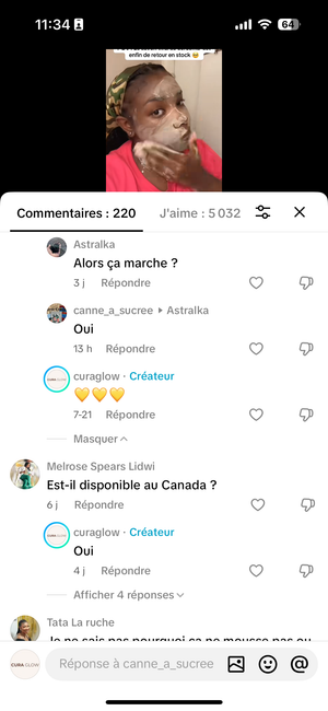 Oui 🌎 ! Cura Glow est efficace sur les peaux claires, mates et foncées. Nos clientes viennent de tous horizons et constatent des résultats visibles.