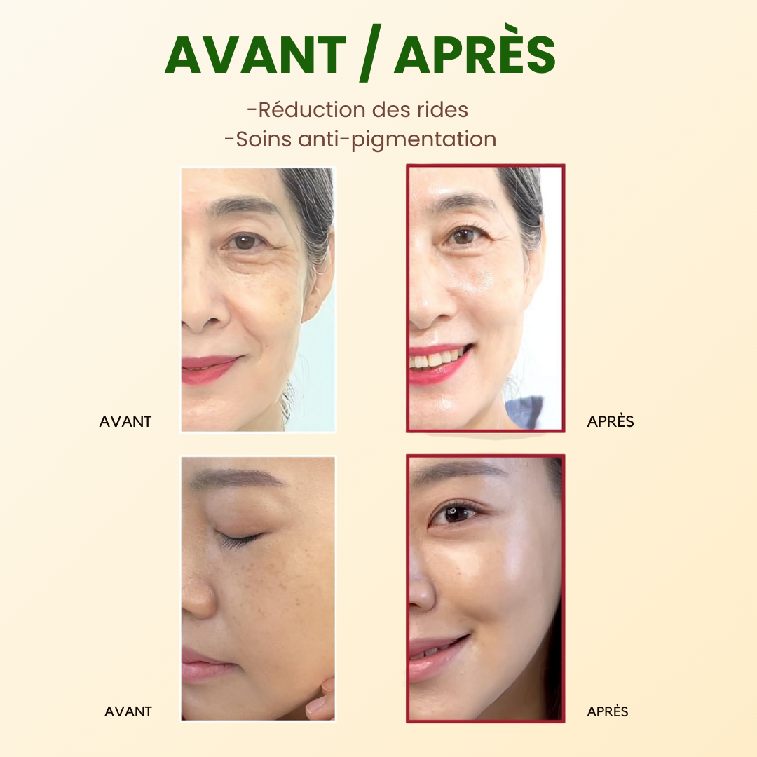 Les premiers changements (peau plus lisse, plus lumineuse) apparaissent dès 4 à 6 semaines. Les effets sur les taches et ridules deviennent visibles dès 7 jours avec une ’utilisation régulière. Certaines peaux peuvent prendre plusieurs semaines.