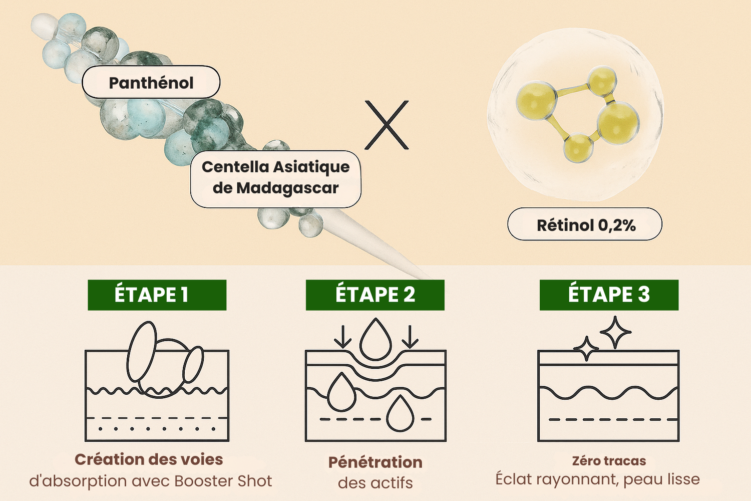 ÉTAPE 2 : Diffuse le rétinol, le rétinal et le squalane en profondeur dans la peau.